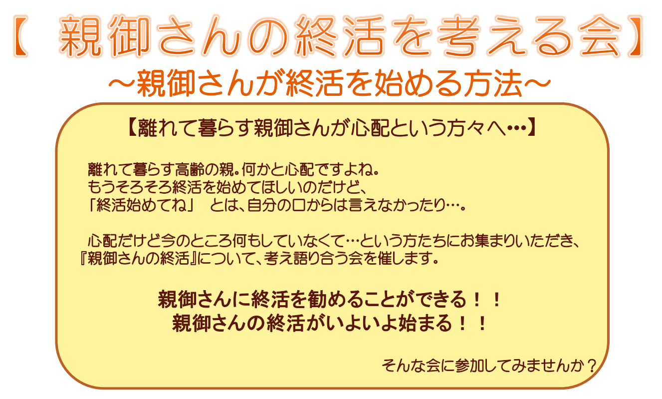 この講座は自分の親の終活について真剣に考えるきっかけになる講座でした。